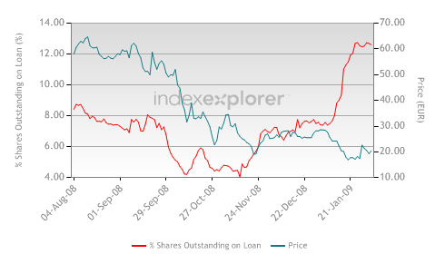 Vielen Dank fuer Deine Infos. Wenn nur die NYSE-Shorts von Bedeutung sind, sollte das Cover-Potential vernachlaessigbar sein. Wenn man die Tages-Umsaetze der Xetra mit einrechnet, was ca. 80% des gesamten Handelsvolumens neben Frankfurt, Stuttgart etc und der NYSE ausmacht (Xetra ca. 10 Mio, NYSE ca. 1,4 Mio Stueck 3-Monats-Durchschnitt), sollte das Day-to-Cover-Ration bei ca. 1 liegen = 1 Tagesumsatz, um alle Shorts zu covern. Das ist nicht sehr viel wenn man auf die Short-Interests anderer Aktien schaut.