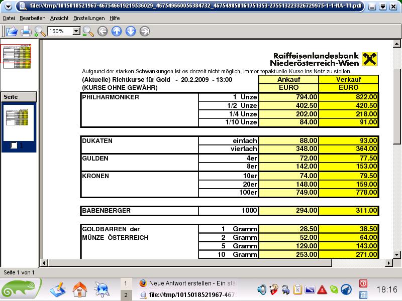 Genau und wenn Silber noch ein bisschen steigt, dann liefert die OeNB auch keine Zehner mehr aus!