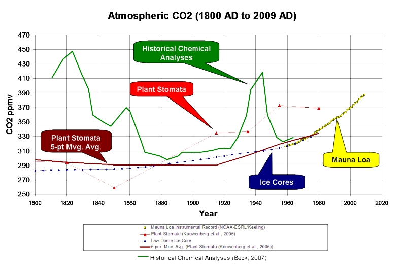 Es gibt allerdings historische Messungen des CO2-Gehaltes der Atmospäre. 1820 waren die Wissenschaftler einfach nicht darauf vorbereitet, wieviel sie zu messen haben. Aber wozu gibt es Ignoranz.