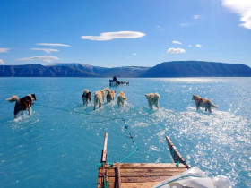 "Schlittenhunde laufen auf Wasser, weil das Grönlandeis schmilzt. Das Foto ging mit dieser Botschaft um die Welt. Viele reagierten erschüttert und Al Gore (71), früherer Vize-Präsident der USA, hat sogar in Dänemark angefragt, ob er das Foto in seiner Kampagne gegen den Klimawandel verwenden kann."