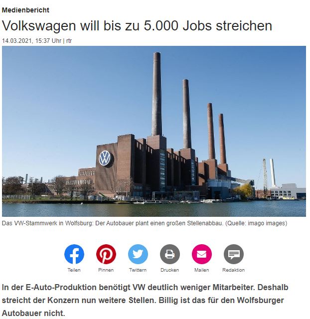jetzt gibt es doch noch gute Nachrichten: Bei VW gibt es die ersten Entlassungswellen - dank des E-Autos