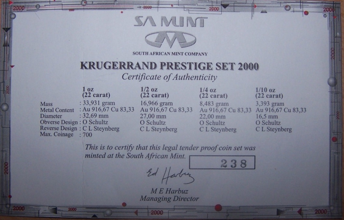 The SA Gold Coin Exchange is selling special Krugerrand sets. You could consider the limited edition Millennium Krugerrand 2000 set, which should retain its value as a collectors' item since only 2 000 were issued. A set costs R5 499.