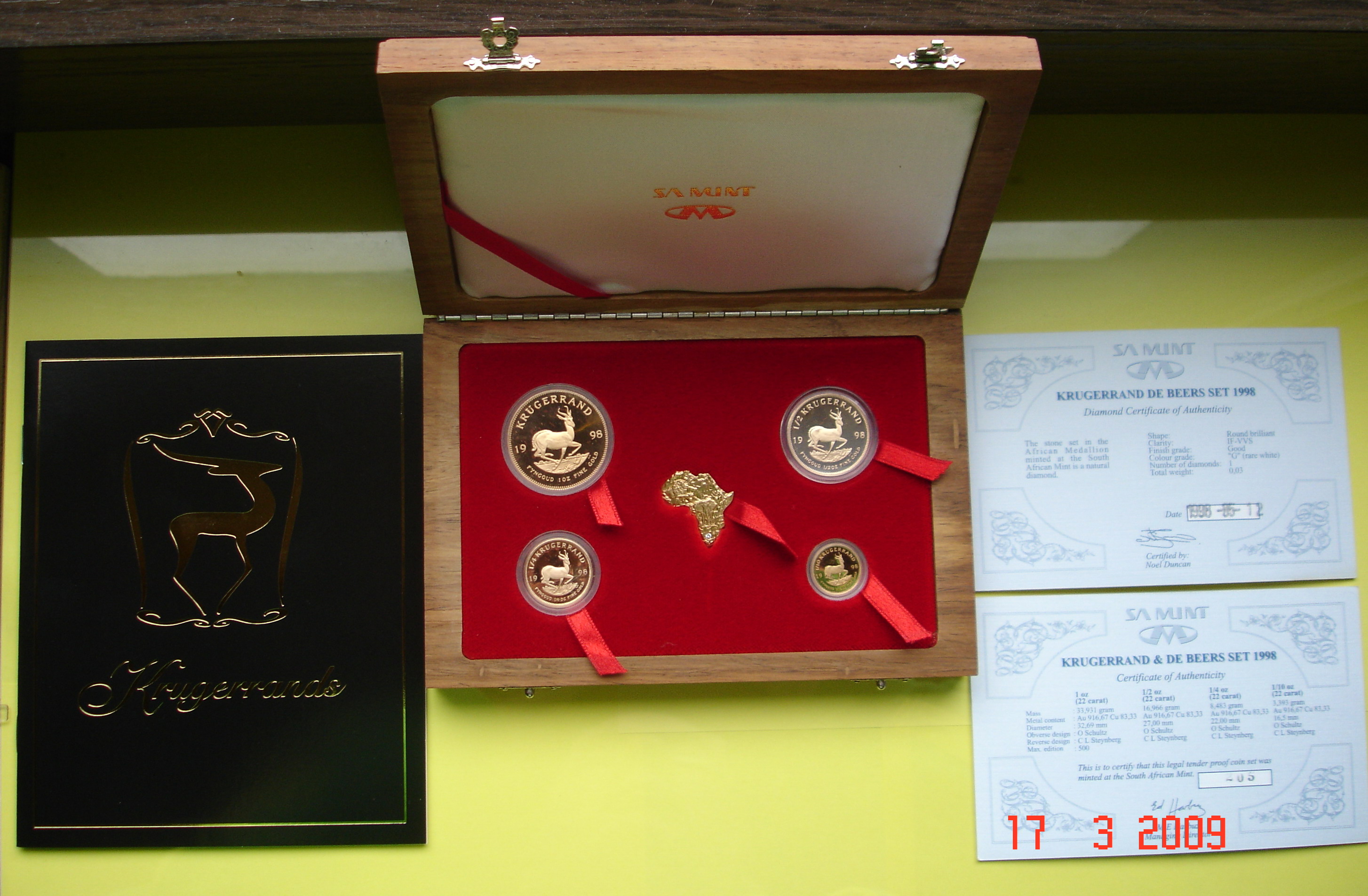 schönes Set das Krugerrand 2009 de Beers mit Aktie !