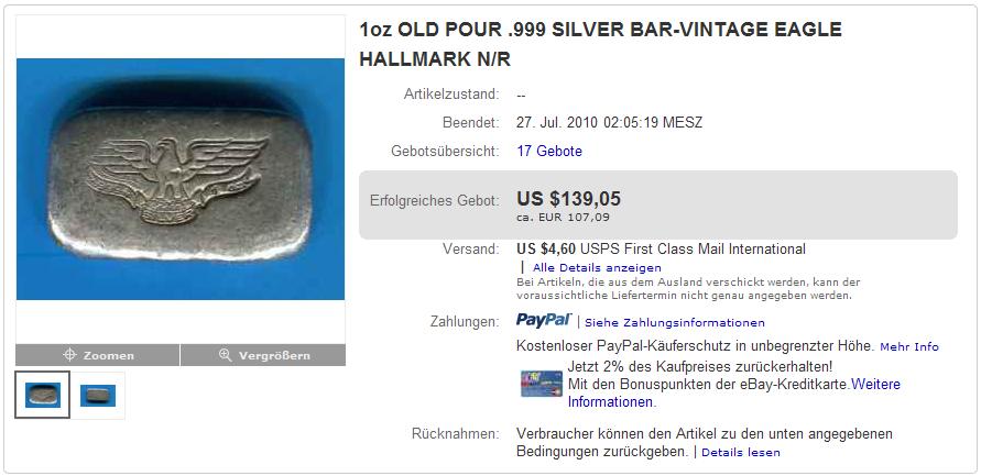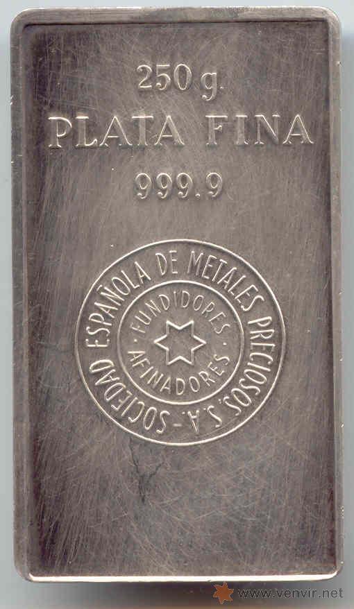 In dieser alten Auktion wurde auch ein Silberbarren (999) mit der Aufprägung "Plata Fina " angeboten.
