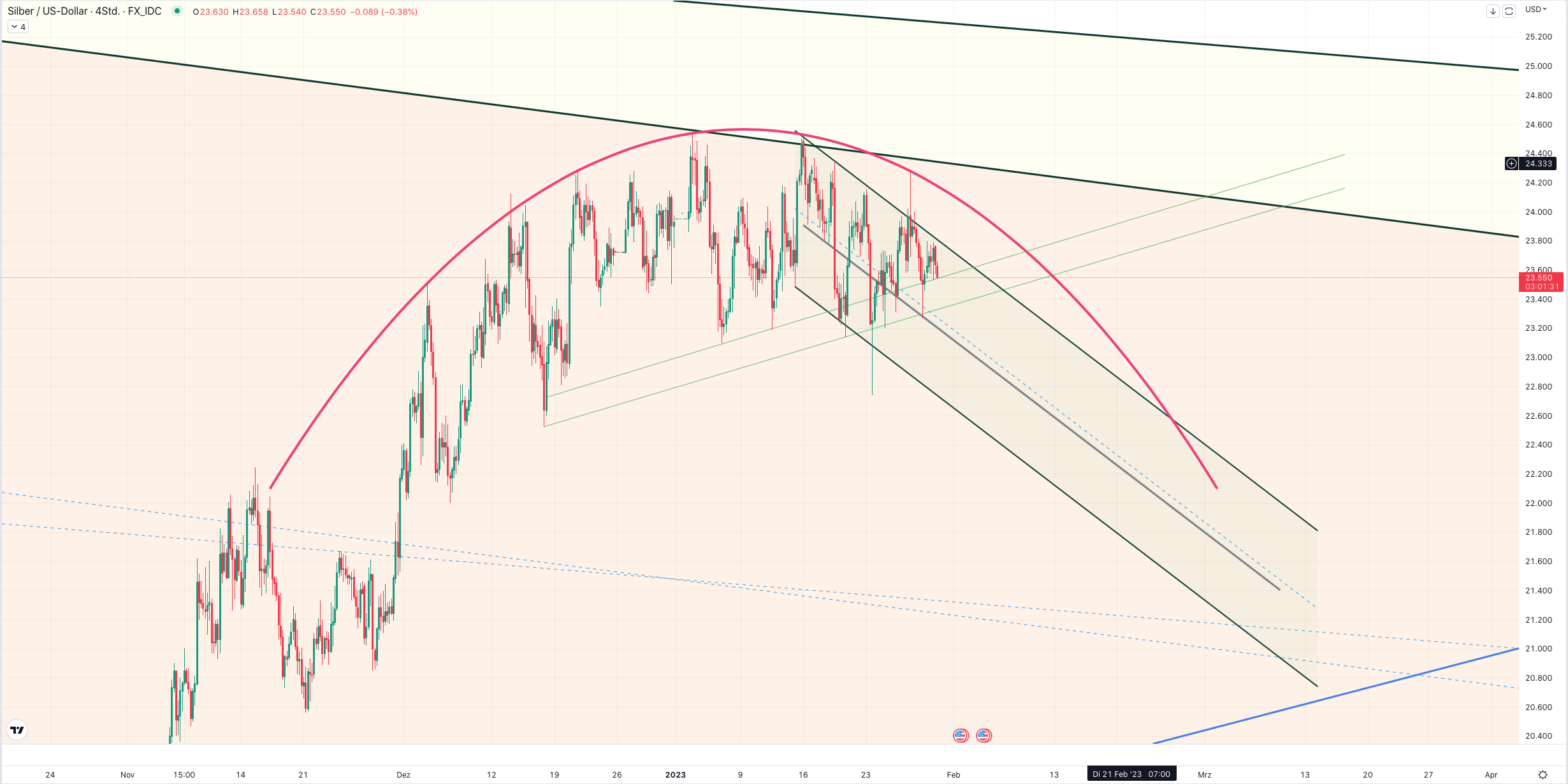 Bei Silber noch long, SL 22.1 Wären dann 1% Depotverlust, das Maximum meiner Regel… 22.25 sollte halten…