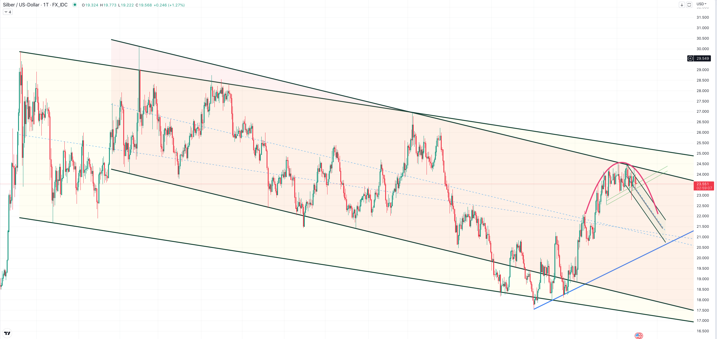 Silber startete die Rallye rund etwa einen Monat früher als Gold. Somit erwarte ich kein neues Hoch mehr bei Silber.