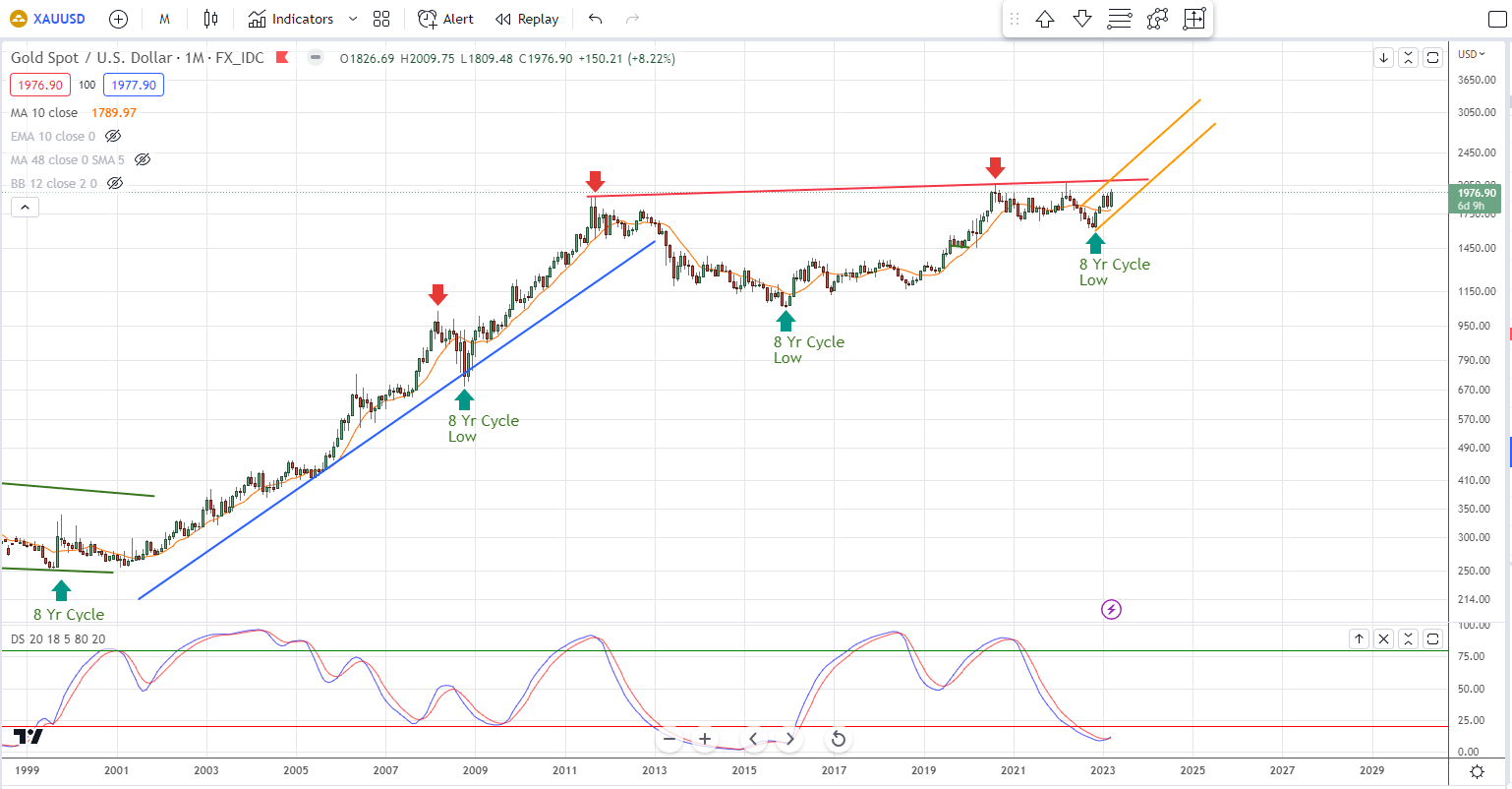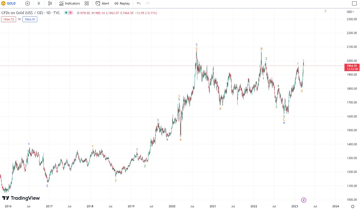 Wir werden sehen, ob unsere Witzwährung da mitspielt. Im ersten Hausseschwung ging es von 2000 bis 2012 um das fünffache nach oben, von knapp 270 auf rund 1380.