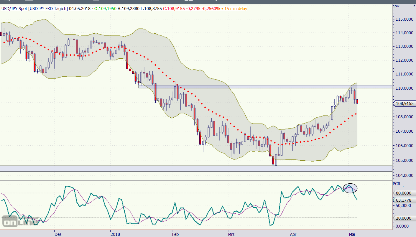 USD/JPY hat am Widerstand bei 110 nach unten gedreht.
