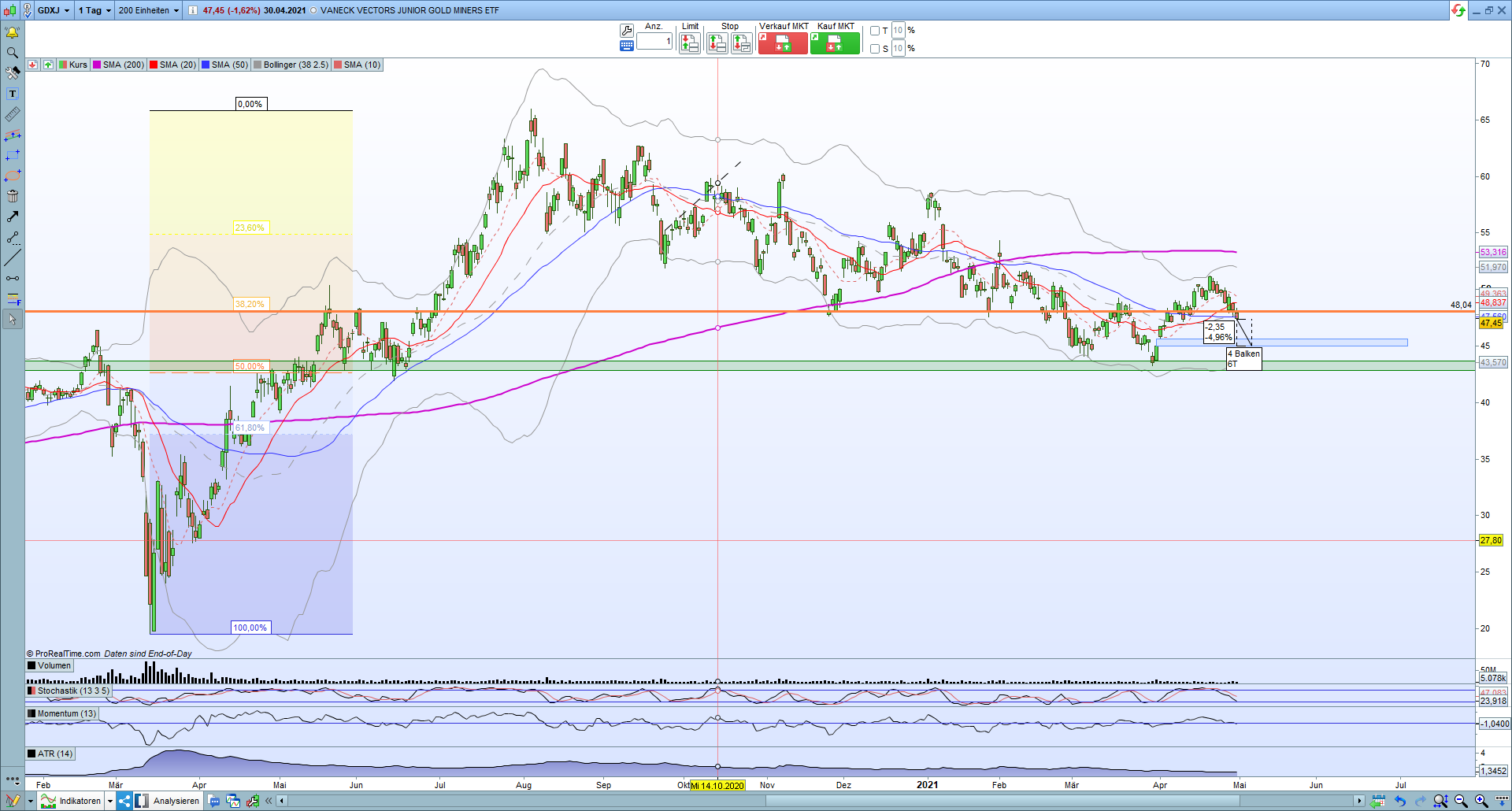 Ja, seit dem Ende des Goldstandard hat die Miners Index damals BGMI, danach XAU, GOX, HUI, dann neulich GDM mit ETF GDX, GDXJ langfristig schlecht entwickelt als Gold, besonders die Endphase.