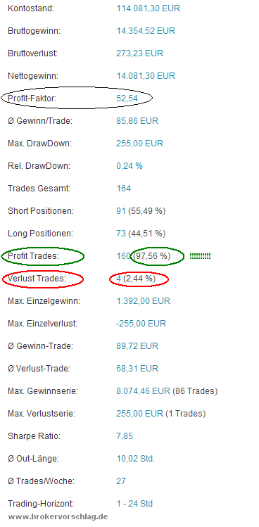 100 positioen in 3 tagen 97 Positive 3 Verluste davon einmal maximal 15.-