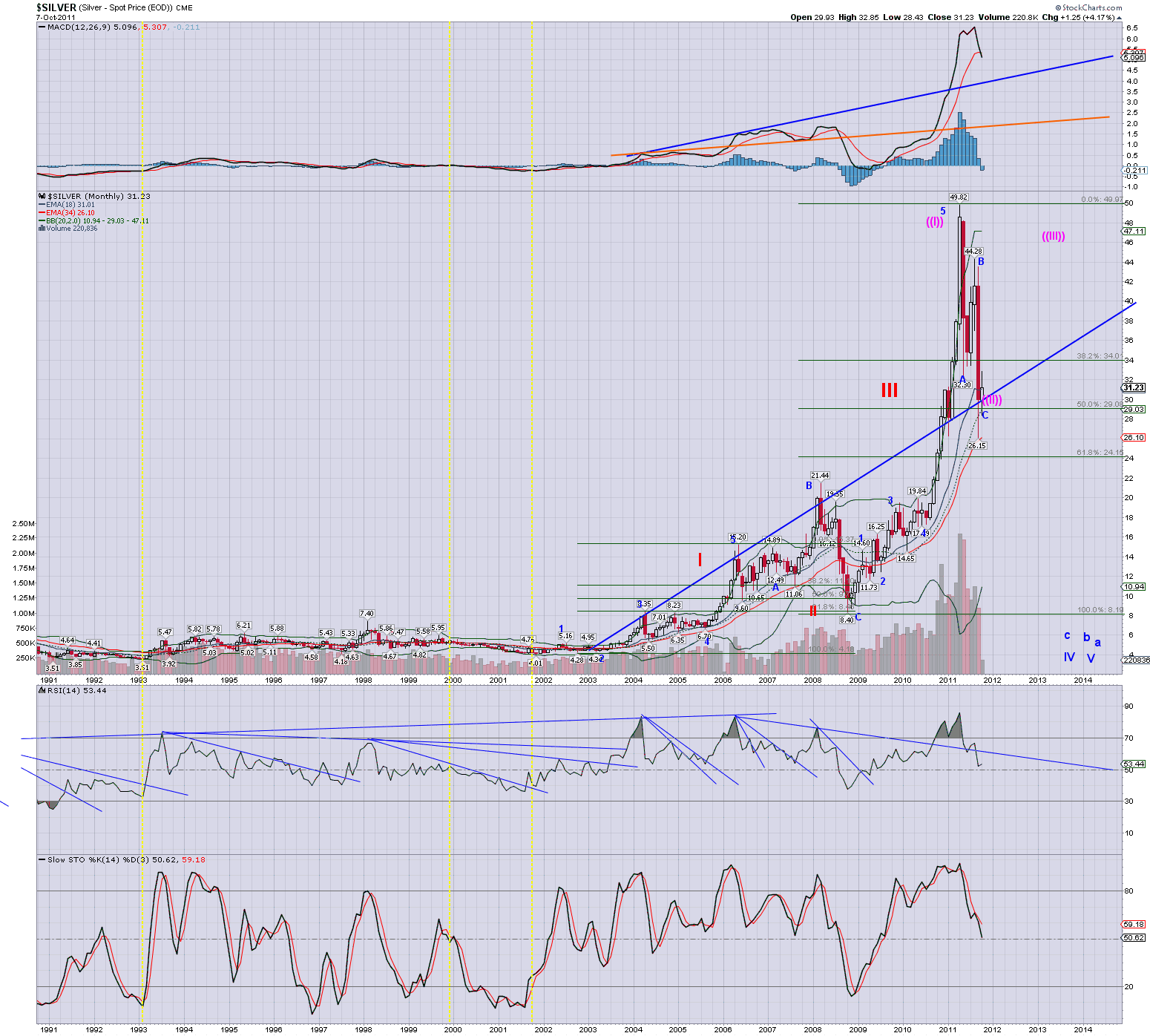 Welle II von III aktuell kònnten wir in a von II sein. retracement (61%) ist 24$. Von mir aus sollten wir hier in der Spanne von 17 bis 20 Monate sein da es der Untergeordnneten Cyclus ist.