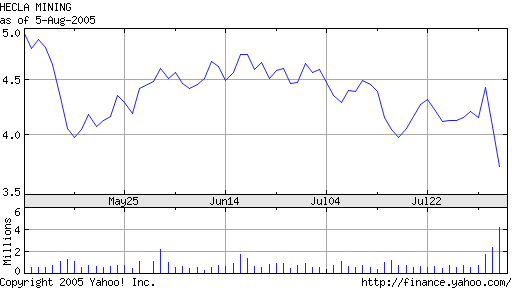 NEW YORK (MarketWatch) -- Hecla Mining Co. reported a second-quarter loss of $6.4 million, or 5 cents a share, vs. a profit of $2.6 million, or 2 cents a share in the same period a year ago, as a strike at the company's Mexico operations and decreased gold production and increased costs at a Venezuela unit hurt results. Analysts surveyed by Thomson First Call had been expecting a profit of a penny a share, on average. Revenue fell to $25.3 million from $31.7 million. The stock closed Tuesday down a nickel at $4.15.