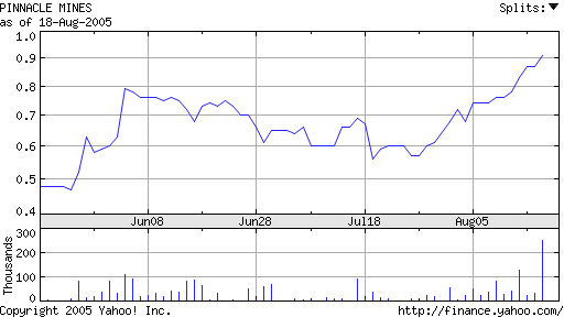 Pinnacle Mines Ltd. is a Canadian based mineral exploration and development company whose activities are international in scope. Its primary assets are located in both Canada and China. In Canada, Pinnacle holds several properties in Northwestern British Columbia, in proximity to numerous past and producing mines including the Silbak-Premier Mine and Barrick Gold's famed Eskay Creek Mine. In China, Pinnacle's current focus is in Southeast Yunnan, an area being increasingly considered for its potential to host significant mineral resources including "Carlin" style gold deposits.