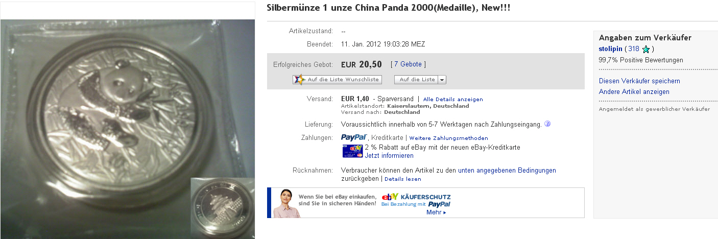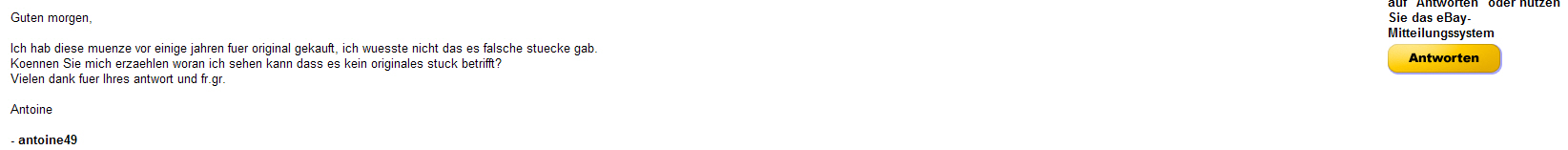 Vorher, ich glaub im 2010, hab ich nuer eine muenze verkauft wovon nach dem verkauf den kaufer gesagt haette dass die muenze nicht original sein wurde.