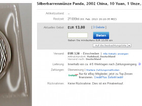 Am 21.01.13 hat der Verkäufer die folgenden Angaben hinzugefügt:hallo,ein Ebayer schrieb mir gerade das der 2000 Panda eine Fälschung wäre,also bitte beim bieten berücksichtigen