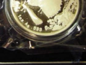 Verkaufe aus meiner privaten Münzsammlung eine Sammlermünze Silberpanda, Jahr 1992.Auf der Vorderseite steht: Ag.999, 1oz, auf der Rückseite: Chinesische Zeichen und 1992. Da ich die Sammlung geschenkt bekam und ich mich nicht mit Münzen auskenne kann ich über die Münze leider keine weiteren Auskünfte geben.