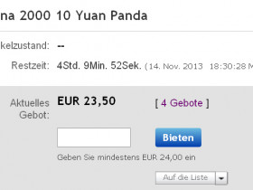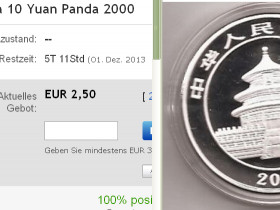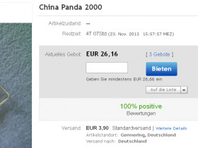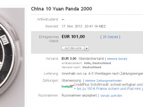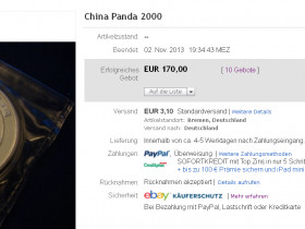.***8 (privat) 19.11.13 19:56 2000 China Panda Münze 10 Yuan (Nr.181255784692)EUR 65,30Artikel aufrufen