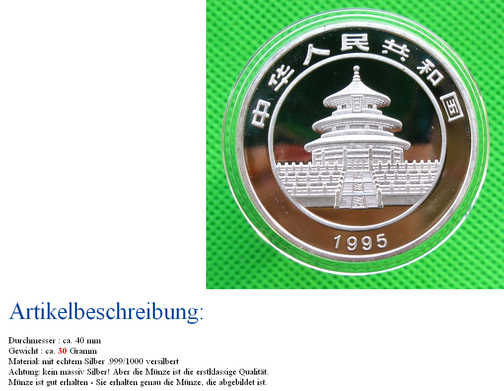 1***1 ( 128[Blockierte Grafik: http://q.ebaystatic.com/aw/pics/icon/iconTealStar_25x25.gif]) 07.01.14 22:29 1995 China Panda Münze 10 Yuan (Nr.181255782677)EUR 10,49Artikel aufrufen