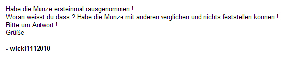 Alles anzeigenich habe in Mai 2011 5 Münzen auf Gold.de gekauft. Danach wahr ich beim Münzen Händler Er hat mir bestätigt das diese Echt sei . Warum sind sie jetzt der Meinung das diese nicht echt ist ? Sind sie experte ?