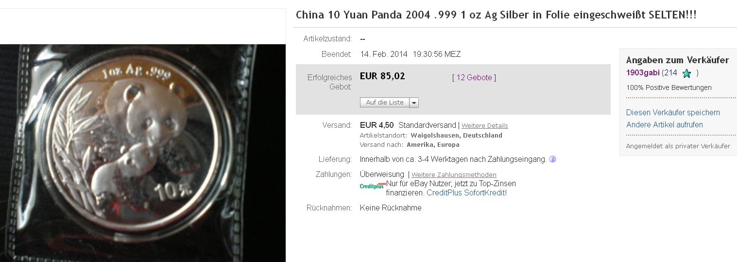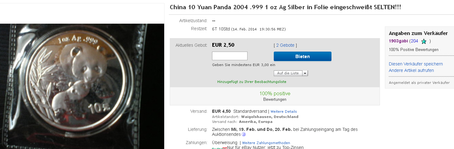 t***t ( 508[Blockierte Grafik: http://q.ebaystatic.com/aw/pics/icon/iconPurpleStar_25x25.gif]) 08.02.14 14:21 2000 China Panda Münze 10 Yuan (Nr.181282530568)EUR 21,50Artikel aufrufenum ehrlich zu sein, ganz hab ich das auch nicht verstanden