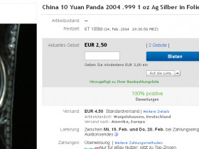 t***t ( 508[Blockierte Grafik: http://q.ebaystatic.com/aw/pic…/iconPurpleStar_25x25.gif]) 08.02.14 14:21 2000 China Panda Münze 10 Yuan (Nr.181282530568)EUR 21,50Artikel aufrufen -