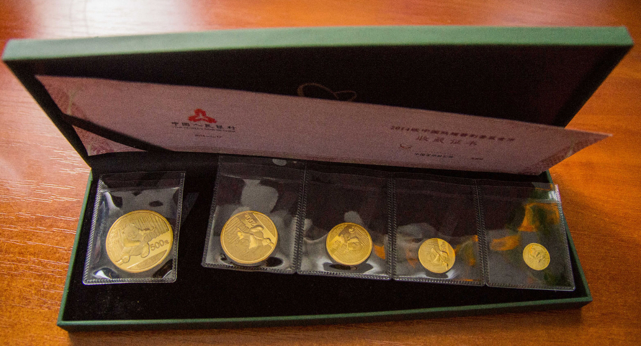 Zertifikat von the People s Bank of China. Auf den Münzen steht 1/20 oz , 1/10 oz , 1/4 oz