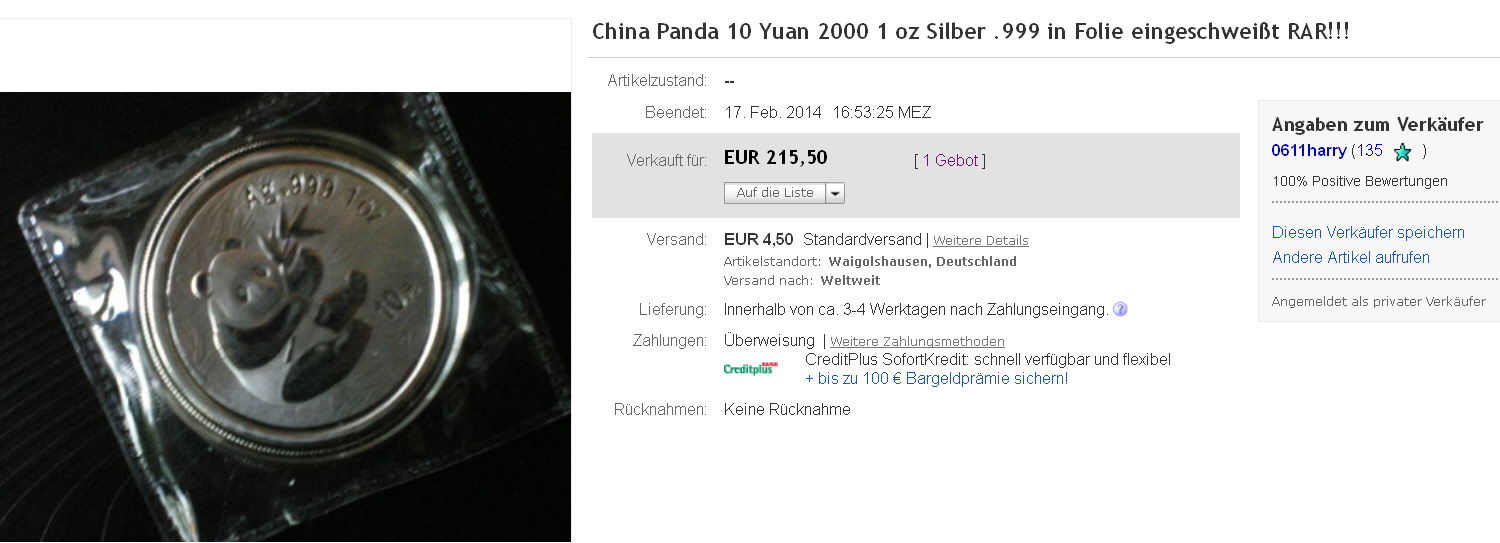 Sie bieten hier auf eine China-Panda Münze aus dem Jahr 2000.