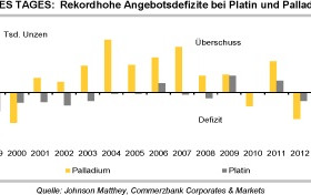 Laut dem Bericht seien es die größten Angebotsdefizite seit über 30 Jahren. "Der Streik in Südafrika zu Beginn dieses Jahres hat zu enormen Produktionsausfällen geführt. Sollte es, wie von Johnson Matthey für 2015 erwartet, zu einer steigenden Automobilnachfrage in den USA und China kommen, ist auch im kommenden Jahr mit einer weiteren Angebotsverknappung zu rechnen", sagt Siegel.