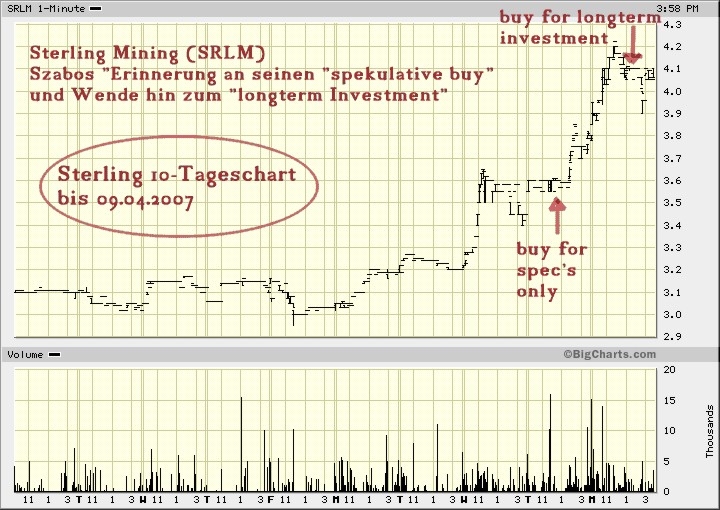 Also ist Sterling Mining, für Tom Szabo, nachdem sie erst was für kurzfristig orientierte, hoch spekulative Anleger war (5. April) nun eben wieder mehr was für langfristige Investoren (9. April) ...