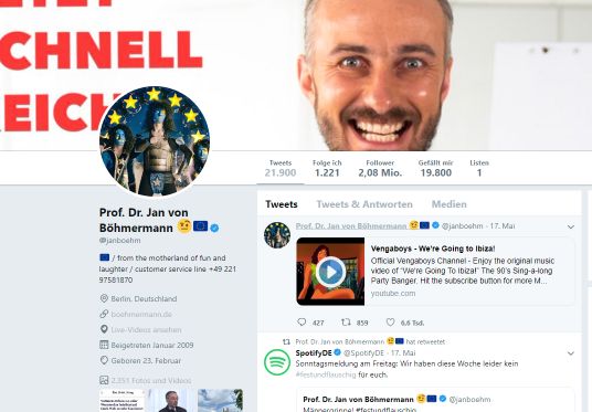 Den Böhmermann schätze ich als einen Typen mit gewaltiger Profilneurose ein. Solchen Leuten ein paar eigentlich belanglose Internas verraten und sie fühlen sich als "Geheimnisträger" unglaublich wichtig und geben gerne weiter den Erfüllungsgehilfen für gewisse Dinge, sogar ganz ohne zusätzliche Bezahlung.