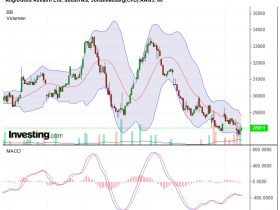 Der MACD steigt, aber der Kurs folgt noch nicht in die obere Hälfte des Bollinger Bandes.