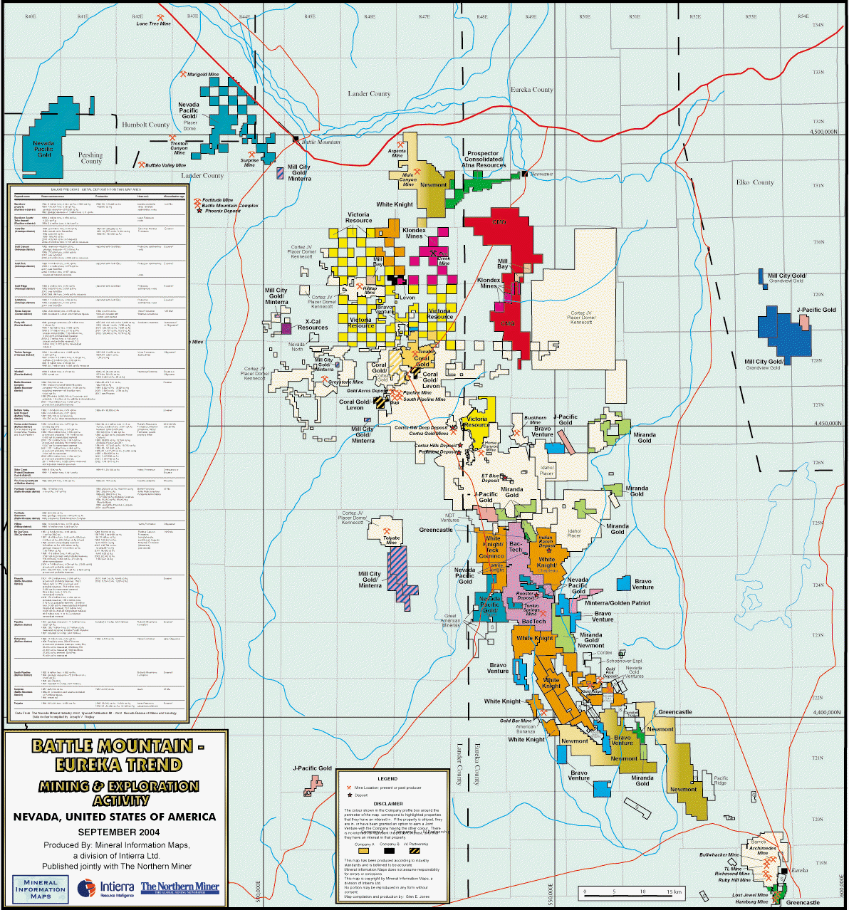 Newmont,Goldcorp und Barrick sind mit Filetstücken in Nevada vertreten.