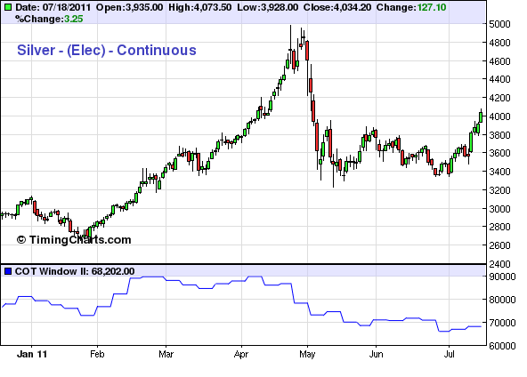 Der grosse Preissprung beim Gold hat aber zu rekordverdächtigen Verkäufen der Comms geführt. Die NSP ist um 42.247 angestiegen. Einen höheren Wert mit 54.089 gab es in den letzten Jahren nur am 8.9.2009. Damals war der POG ebenfalls um 50 USD in einer Woche gestiegen. Was dann zu einer 3 wöchigen Konsolidierung führte.