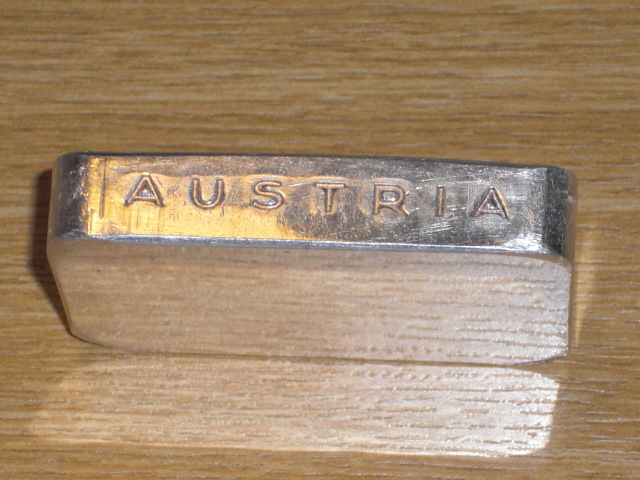 Dann steht da 250g 8,04Oz und an beiden Längsseiten ist einmal Austria und gegenüber Österreich eingeschlagen.
