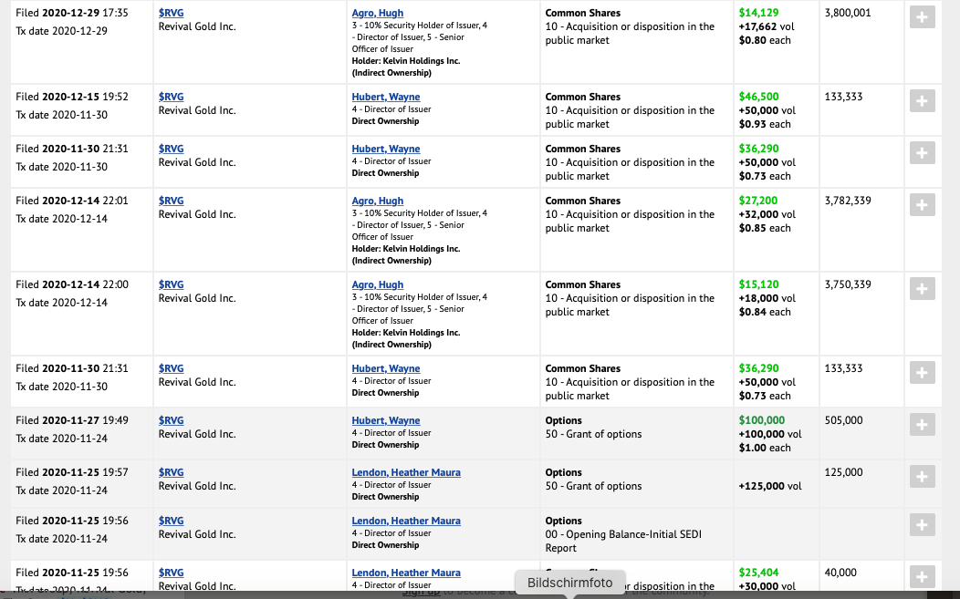 Insiderkäufe gibt es schon seit 1,10 Can$ ohne Ende, darauf schaue ich mittlerweile verstärkt. Heute SEDI-Update: