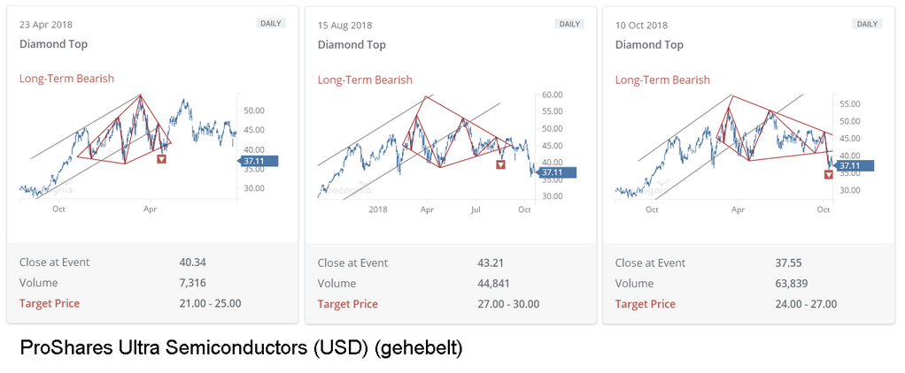 Im Semiconductor Index sehen wir eine seltene und schöne Diamant-Umkehr. Das dürfte den Druck erzeugen für eine Entladung nach Süden!