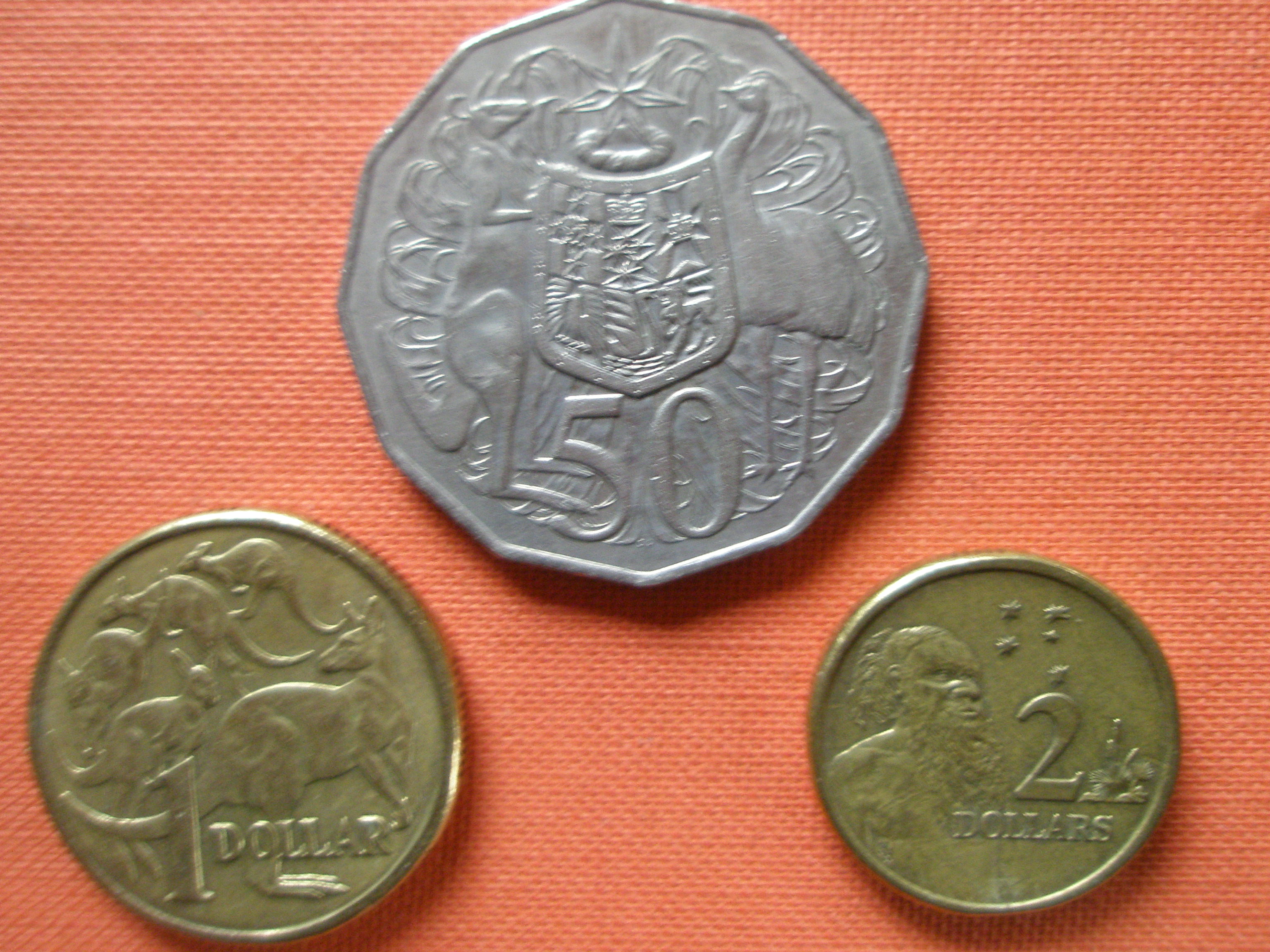 Zu den australischen Geldmünzen und dem 5 $ Schein, die das Bild der Queen tragen,