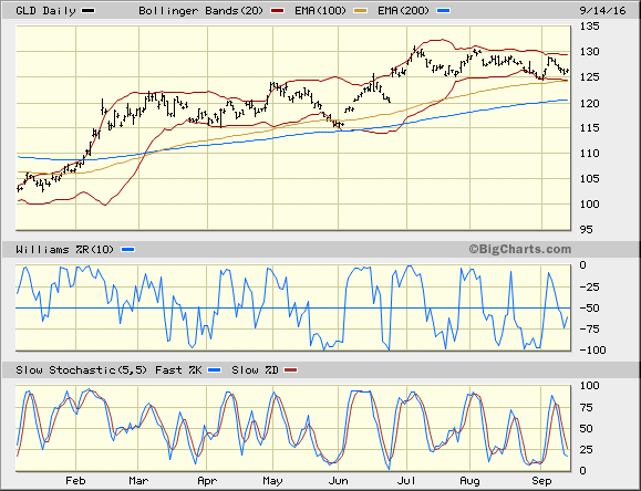 Hier ergänzend ein sehr schlichter Chart für GLD , YTD. Es sieht nicht danach aus, daß wir vor einem Einbruch stehen, geschweige uns den mehrfach im Forum zitierten 1000 $ annähern. ;)