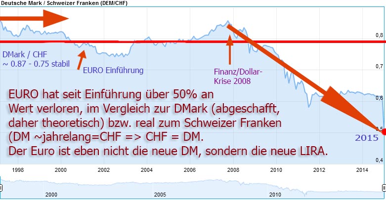 Die 1.20 war idiotisch von Beginn an. Wieso eine tote Währung, den Schrottro..EURO, künstlich stabilisieren? Lasst die EU-Tanic, die Schrottwährung und die EuDSSR doch absaufen! Besser ist es. Nur Idioten halten noch Kapital in Euro... (wobei derzeit long gehen - egal lassen wir das).. Für die Südzone, den Club-Med, wäre ein EURO / USD (der anderen Schrottwährung) ca. von 0.8 angebracht. Nochmal 20% Abwärtspotental, zu den 50% bisher seit 2008. 55% Verlust im Euro, immer noch nicht genug für das