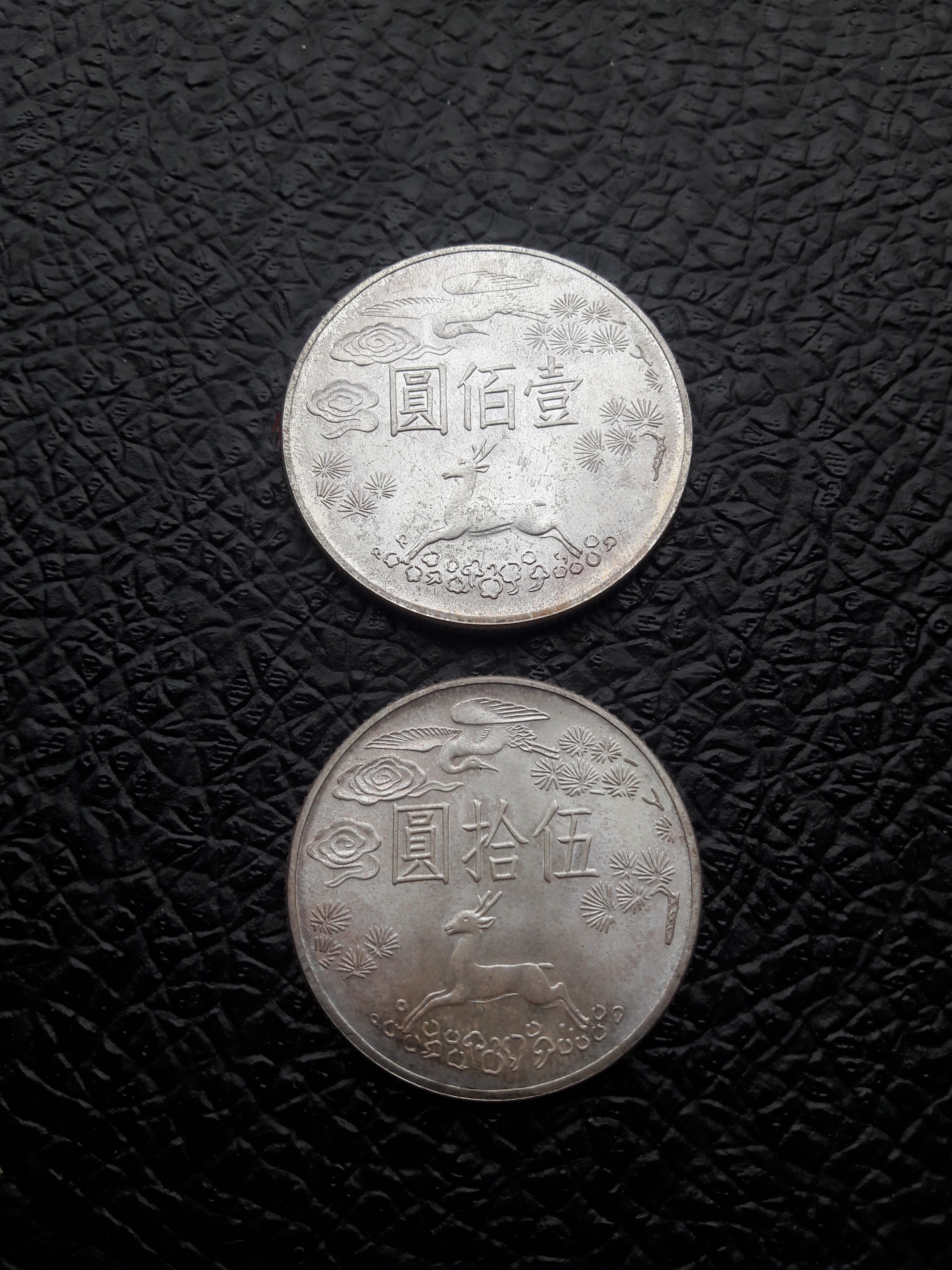 Lt. KM Katalog ist es Taiwan 1965. Abhaengig vom Gewicht 17,1 oder 22,1 sind es 50 oder 100 Yuan 750 Silber.
