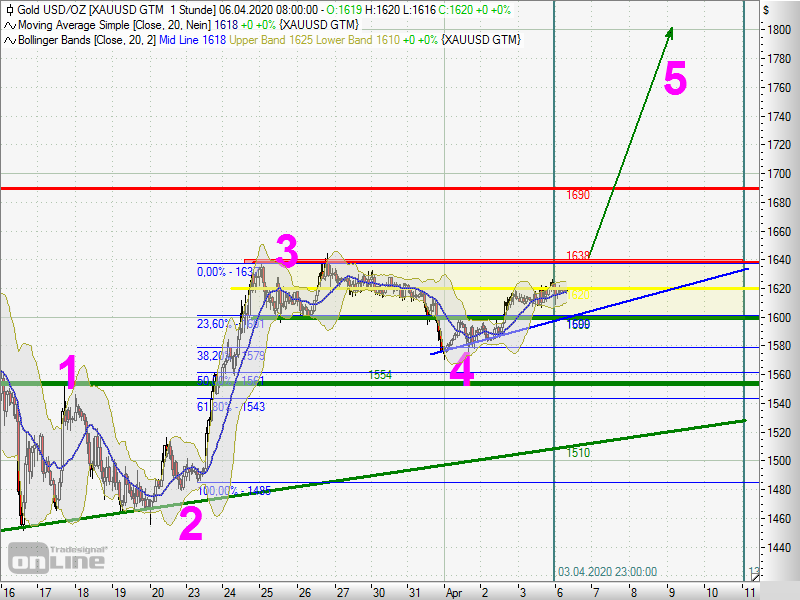 Normalerweise jetzt zügig bis 1.700 $, dann Korrektur in einer 2 der 5 (50 - 61,8 %) und dann mindestens Allzeit-Hoch.
