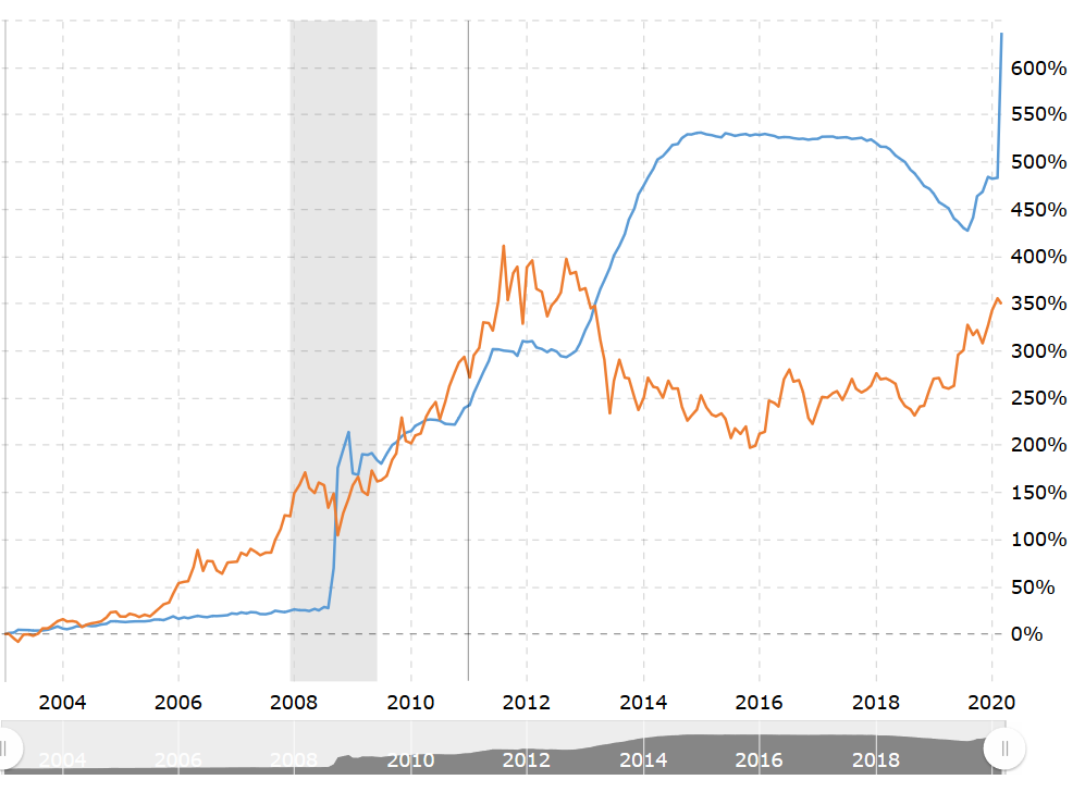 Die Notenbankbilanz der US-FED explodiert und Gold muss hier nachziehen. Der Goldpreis hat eine sehr hohe Korrelation mit der Notenbankbilanz der FED. Deshalb tat sich der Goldpreis auch im Zuge der Bilanzkürzungen der FED so schwer. Diese Kürzungen sind Geschichte und die FED-Bilanz ist in den vergangenen Tagen regelrecht explodiert.