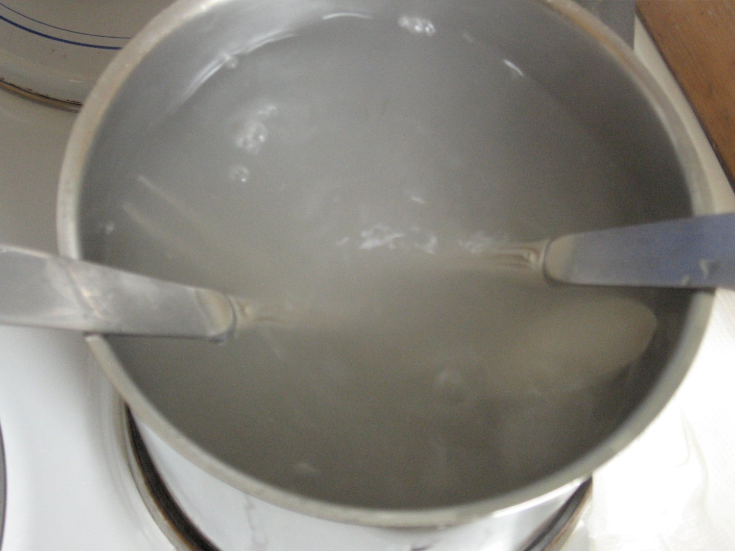 Also habe ich einen hohen Edelstahltopf genommen, den Boden mit Alufolie ausgelegt, Salz und etwas Kaiser-Natron hinzugegeben, Wasser drauf und aufgekocht.