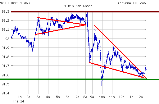 The dollar closed down .35 to 91.80, while the euro rose .58 to 118.69.