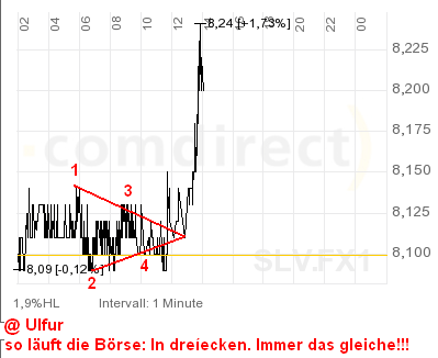 silber hat sich da schon "sauberer" bewegt - wenn auch etwas zaghaft beim thrusten hier. Alle Achtung dass über den $8,20 geschlossen und im Plus heut. Well done G&S!!!
