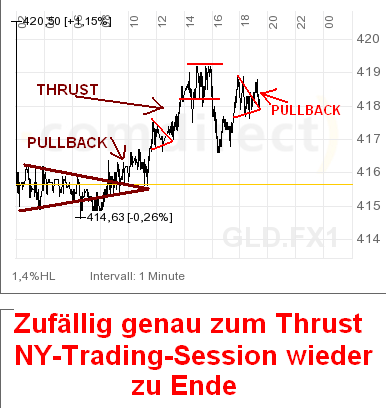 der Thrust hat wenigstens schon angefangen und GEZEIGT DASS GOLD BULLISH ist!
