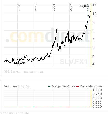 Wobei das Tempo des Silberpreisanstiegs die letzten Monate schon beachtlich war und ich immernoch davon ausgehe, dass wir, kurzfristig, nochmal Preise um die 10$ sehen werden....
