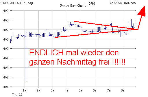 Ich werde der Finanzial Times Deutschland einen Brief schreiben, und Dich darin als Ersatz für den erfolglosen Wolfgang vorschlagen. Zudem wären Deine aussagekräftigen Gold Charts, mit den "bognairschen" Dreiecken, sicher direkt eine Wohltat für die interessierten Leser dort.