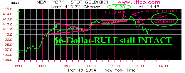 March 18 - Gold $410.70 up $4.20 - Silver $7.43 up 19 cents