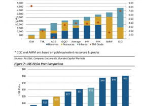0.34x our spot NAV vs peers at 0.54x. GQC has an EV/oz of US$20/oz TMI versus
